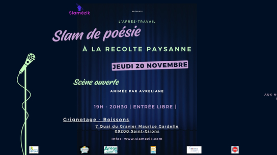 Venez écouter et voir les artistes slameurs et slameuses dans ce lieu intimiste et atypique : places assises, entrée libre, bon esprit et grignotage/ boissons locavores.