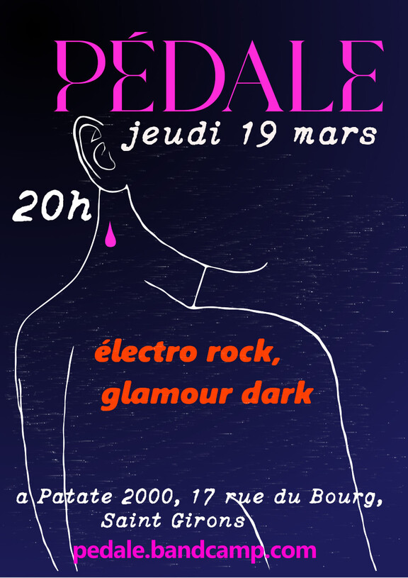 JEUDI 19, 19h30 : CONCERT : PÉDALE - un duo queer de musique electro rock : ambiance electro avec guitare basse et voix. Boisons et grignotages à prix libre.