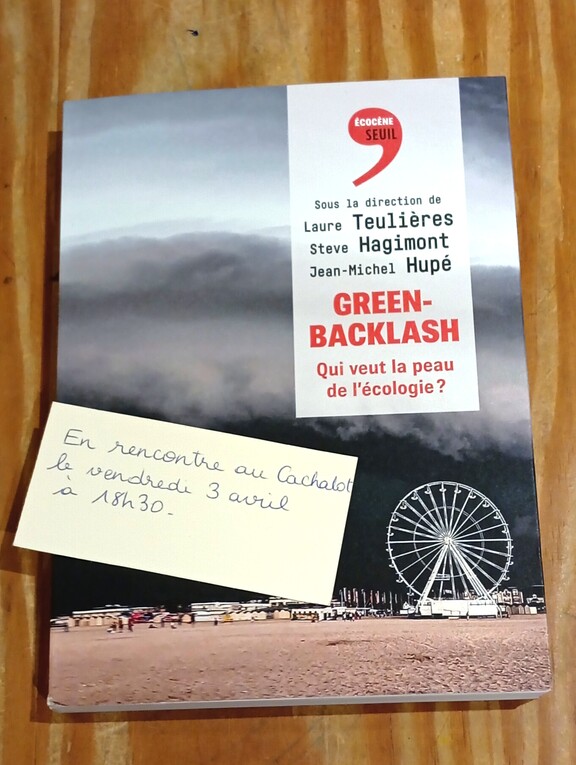 Rencontre autour du livre Green-backlash, Qui veut la peau de l'écologie?, paru aux éditions Seuil-Ecocène, avec leurs co-directeur-ices, Laure Teulières, Steve Hagimont et Jean-Michel Hupé (sous réserve pour ce dernier).