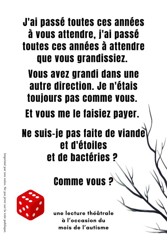 Samedi 18 à 16h : LECTURES THÉÂTRALES : « Les antennes et les branches » - Dans le cadre du mois de l'autisme